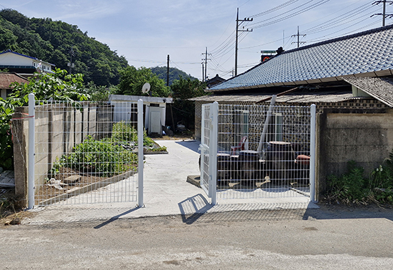 휀스 담장과 함께 대문 설치 작업으로 마무리했다.