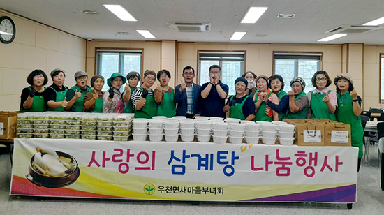 신동일 새마을부녀회장은 “무더운 여름을 잘 보내시길 바라는 마음으로 삼계탕을 준비했다”며 ”앞으로도 우천면 어르신들을 위한 나눔과 돌봄 활동을 꾸준히 이어가겠다”고 전했다.