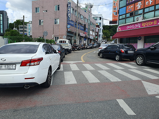 일례로 횡성읍 횡성성당∼북천로타리(화성로 1번길) 양방향 약 80m 구간. 이곳 도로는 인도 무단점용과 불법주차 차량으로 인해 오래전부터 상습적으로 보행권 침해와 차량 흐름 방해는 물론 사고위험에 노출돼 불편을 겪고 있다는 민원이 잇따르고 있는 곳이다.