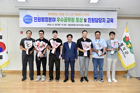 | 횡성군은 2025년 상반기 민원행정분야에 우수한 성과를 보인 공직자와 부서를 포상하고, 민원 응대 역량 강화를 위한 교육을 지난 28일 청소년수련관 대강당에서 실시했다.