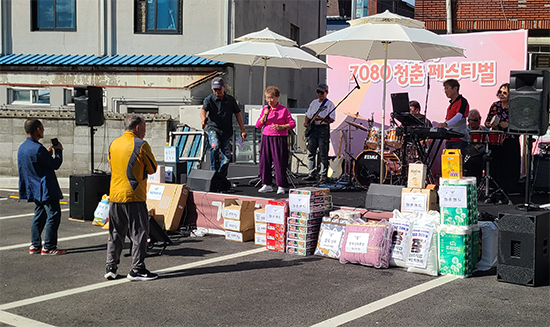 무대 뒤로는 ‘7080 청춘 페스티벌’이란 현수막이 걸려 있었다.