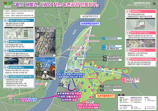횡성군은 전국 최초 2년 연속 농촌협약 공모에 선정돼 814억 원의 사업비를 확보한 것에 이어 이번에 농촌공간정비사업 공모 선정으로, 농촌공간재구조화 선도 시군으로서의 입지를 다졌다.