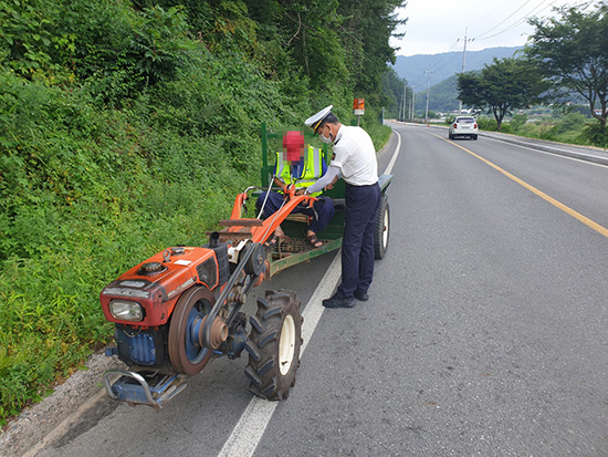 | ↑↑ ▲ 횡성경찰서는 농기계로 인한 노인교통사고가 발생함에 어르신을 위한 교통안전교육 및 야광안전조끼, 농기계에 야광반사지 부착을 통해 노인교통사고가 발생하지 않도록 사고 예방을 실시하고 있다. |