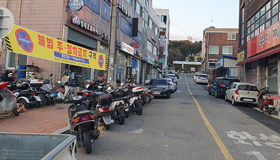 이 장소는 일부 상인들의 영업을 위한 주정차 장소가 아니라 상인들 자동차를 상습으로 내집 주차장처럼 이용하고 있는 것이어서 타 구간의 불법주차 단속을 하려면 이곳부터 정리를 해야 불법 주정차 과태료도 납부할 명분이 있는 것이다.