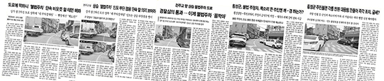 이에 본지는 민원인 제보에 따라 여러 차례 신문 지면을 통해 보도했고, 횡성군의 고질적 불법 주차난 해소에 대한 미온적 대처가 아니냐는 지적을 했다.