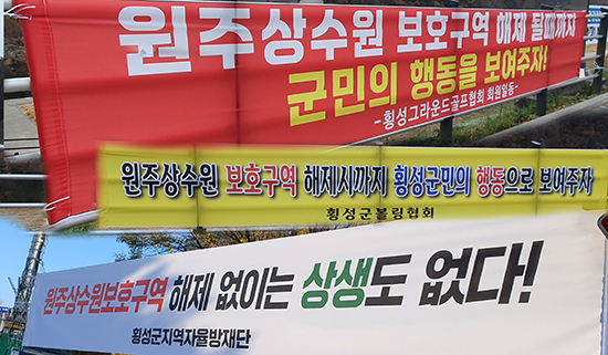 한편 횡성지역 거리 곳곳에는 원주 상수원보호구역 해제를 촉구하는 각 단체 목소리가 담긴 현수막이 내걸려 있다.