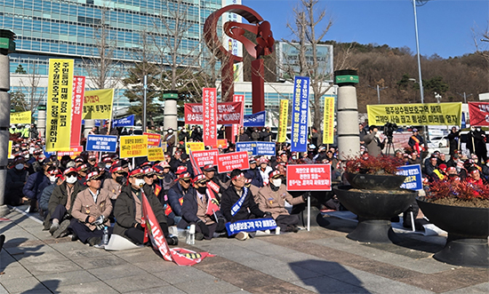 대책위는 총궐기대회 현장에서 원강수 원주시장에게 전달할 ‘원주상수원보호구역 해제 촉구문’을 발표하고 직접 전달하기 위해 원주시청 현관으로 이동했다.