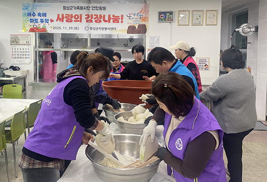 | 횡성군자원봉사센터(센터장 한재수)는 지난 29일 장애인종합복지관에서 횡성군가족봉사단이 연합으로 참여한 소외계층을 위한 김장 나눔 활동을 진행했다.