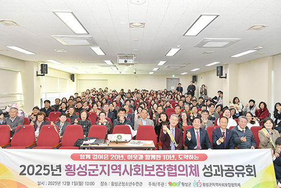 | 횡성군지역사회보장협의체는 지난 1일 횡성군청소년수련관에서 김명기 군수, 표한상 군의회의장, 군·읍·면 협의체 위원 등 160여 명이 참석한 가운데 2025년 성과공유회를 개최했다.