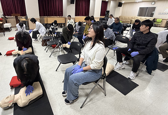 교육 내용은 △가슴압박소생술(Hands Only CPR) △자동심장충격기(AED) 사용 방법 △AED 관리·점검 요령 등으로 구성됐다. 참가자들은 심폐소생술 교육용 인형과 AED 기기를 활용한 실습을 통해 신속하고 정확한 대응 기술을 익혔다.