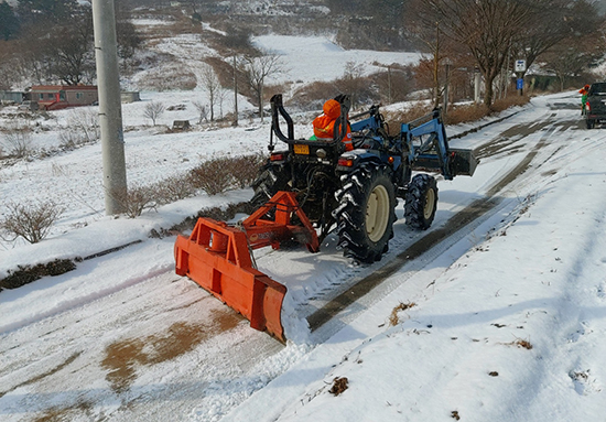 | 눈이 내리는 날이면 마을마다 트랙터를 몰고 마을 주민들의 안전한 통행을 위한 마을안길 제설작업을 하는 마을 봉사자들이 있다.