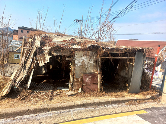 읍상3리 마을 주민 A씨는 “저 폐가는 10년 이상 방치되고 있는데 마을 주민들도 너무 보기 싫다고 철거하자고 해서 작년에 읍사무소에 민원을 넣었지만 개인 사유지인데다 연락이 닿지 않아 답보 상태에 있다”며 “지붕이 슬레이트로 덮여있어 우리 마음대로 치울 수도 없고, 철거가 어렵다면 도시미관과 안전을 위해서 가림막이라도 설치해 줬으면 좋겠다”고 제안했다.
