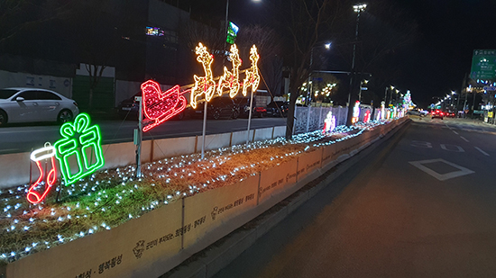 | 횡성군이 지난해 11월 말 횡성읍 시가지 8개 구간(횡성오거리 중심) 가로수에 사업비 1억 2,000만 원을 투입해 경관조명을 설치하고 올해 3월 초까지 운영한다고 밝혔다.