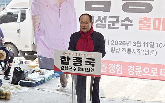 | 오는 6월 3일 실시되는 제9회 전국동시지방선거 횡성군수선거에 국민의힘 소속 함종국 전 강원도의회 부의장이 지난 11일 출마를 공식 선언했다.